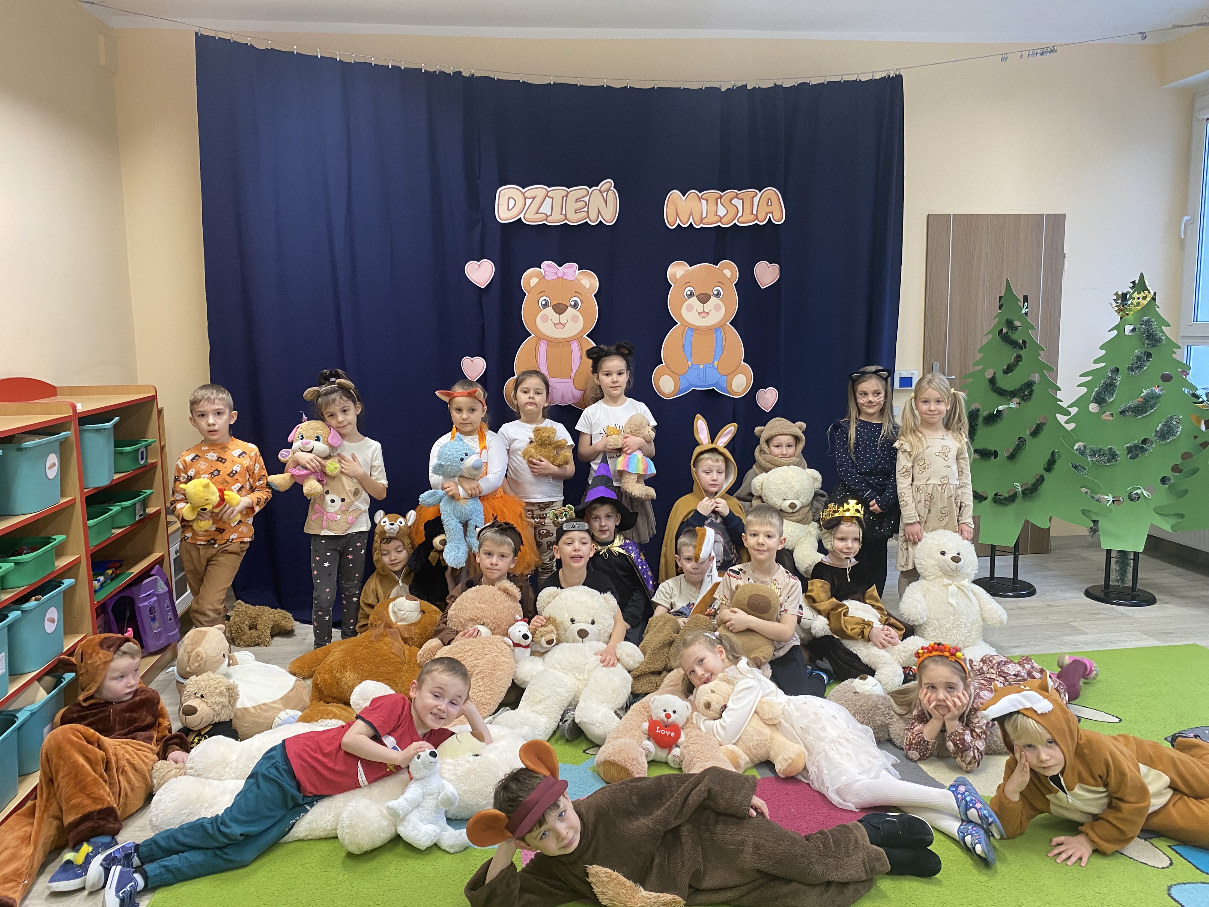 Z okazji Światowego Dnia Misia dzieci zapoznały się z historią misia, obejrzały przedstawienie w wykonaniu przedszkolaków z grupy Rogasia oraz wzięły udział w jesiennym balu misiowym.