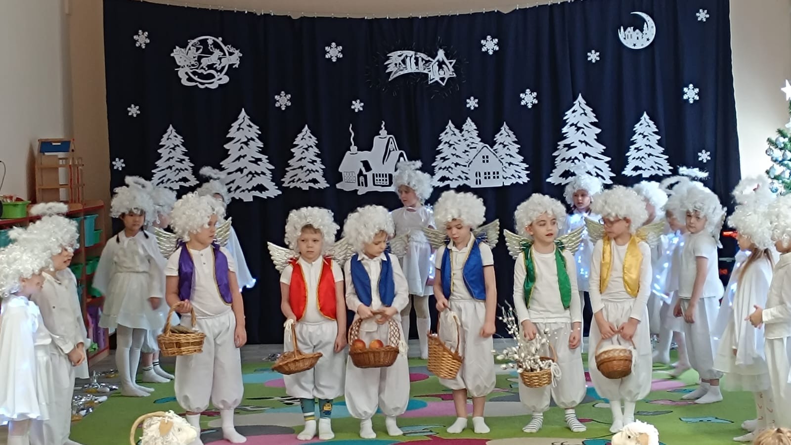 Wigilia Bożego Narodzenia to jeden z najpiękniejszych dni w roku, dlatego tradycją naszego przedszkola jest przygotowanie i wystawienie w okresie przedświątecznym Jasełek. Przedstawienie pt. „Światło w płatkach śniegu” w wykonaniu przedszkolaków wprowadziły całą społeczność przedszkolną w świąteczny i magiczny czas. Świąteczny nastrój podkreślały niecodzienne stroje dzieci, dekoracja sceny. Mali aktorzy z wielkim przejęciem wygłaszali swoje role, z radością tańczyli i śpiewali.