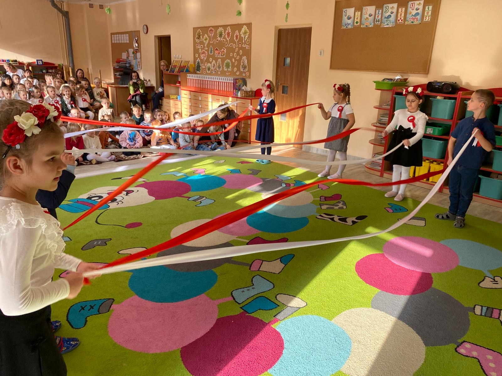 Świętowanie Dnia Niepodległości to kształtowanie postaw patriotycznych, rozwijanie szacunku do symboli narodowych i historii Polski, a także doskonalenie umiejętności społecznych, artystycznych i ruchowych. Brawo dla naszych przedszkolaków za piękny i wzruszający występ.